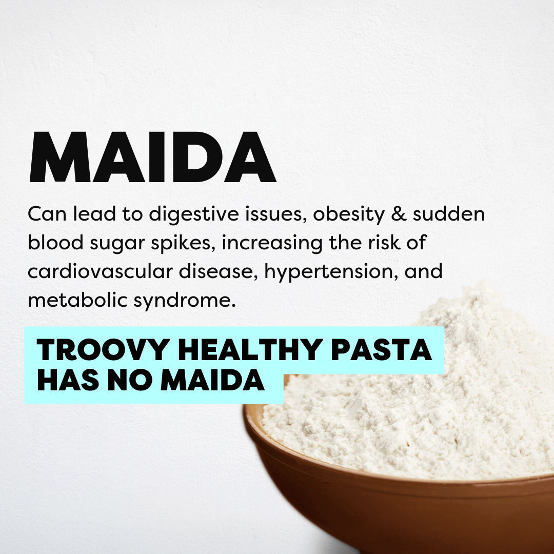 No, Troovy's pasta is made from a grain mix of 4 different grains: Durum Wheat Semolina, Besan, Jowar, Brown Rice making it extremely nutritious and zero compromise on taste.