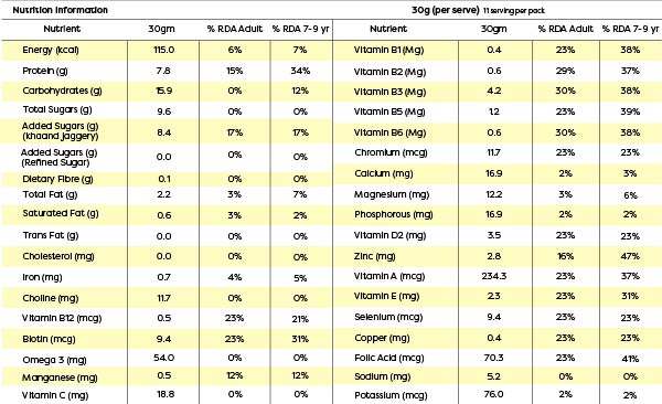 - Clean Ingredients: Made with 7+ millets and grains (like ragi, oats, bajra) and almonds/walnuts. Sweetened only with jaggery (the lowest sugar content in the market).