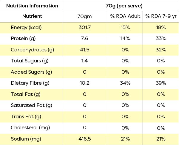 - Made with 77% ragi, urad dal, rice and sabudana, light, crisp and rich in fibre.