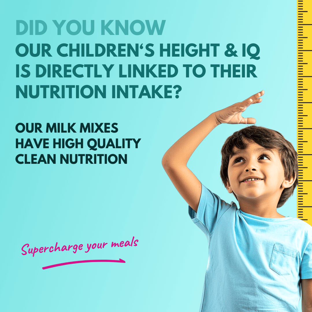 Troovy's nutri milk mix is made with all-natural ingredients and gives a triple boost of growth, strength and brain development. Once opened, transfer into an air-tight container and finish within 18 months!