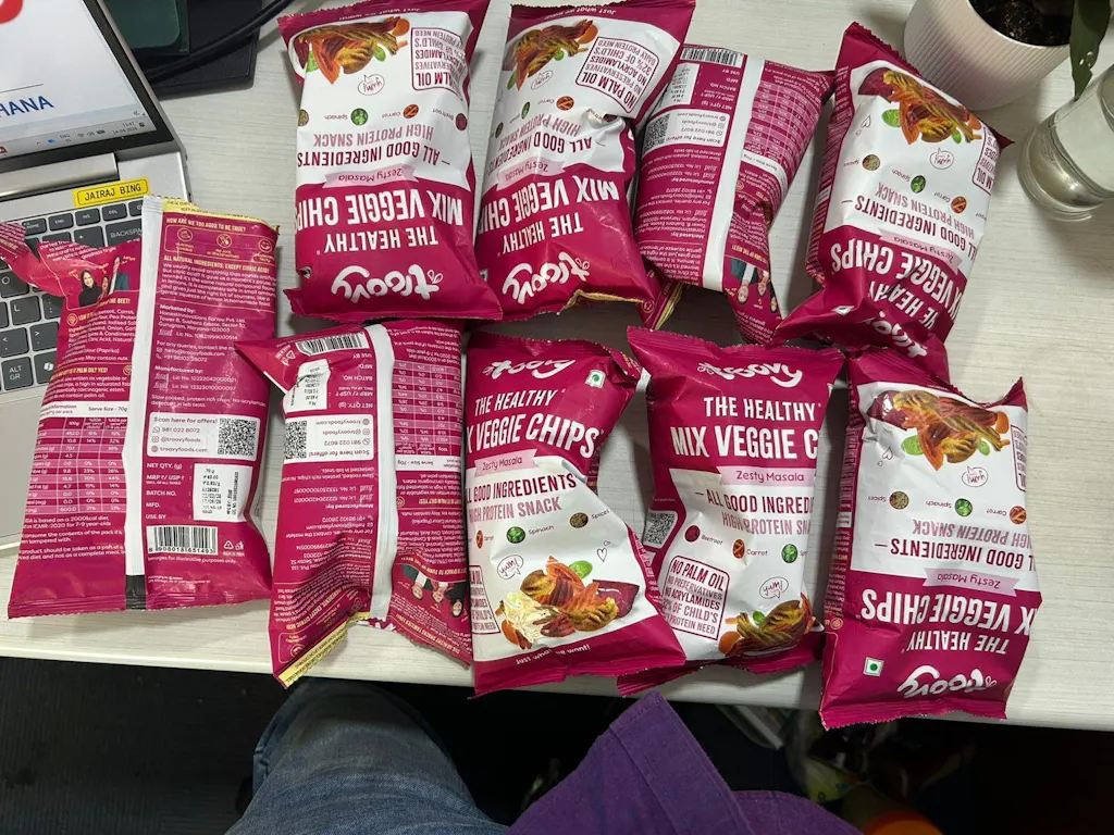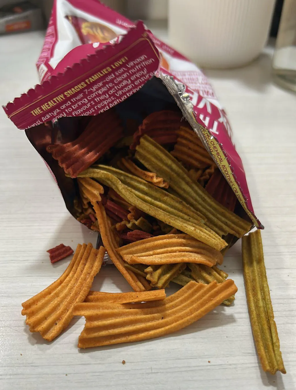 • A vibrant, veggie-rich portion of healthy chips crafted for clean, colourful snacking.